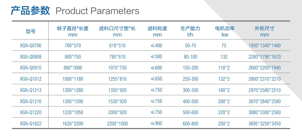 进料粒度:≤1600mm