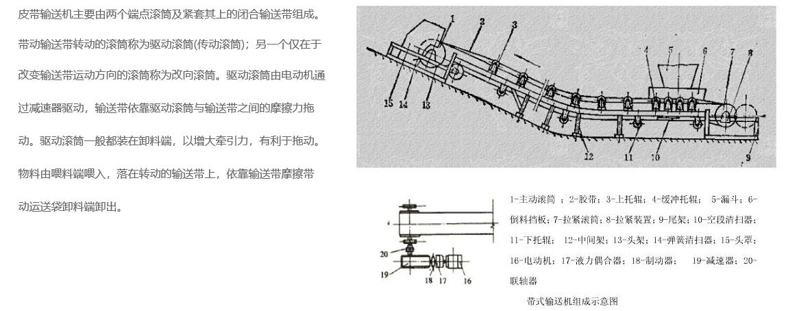 使输送带达到必要的张力,以免在驱动滚筒上打滑,并使输送带在托辊间的挠度保证在规定范围内。